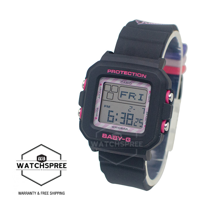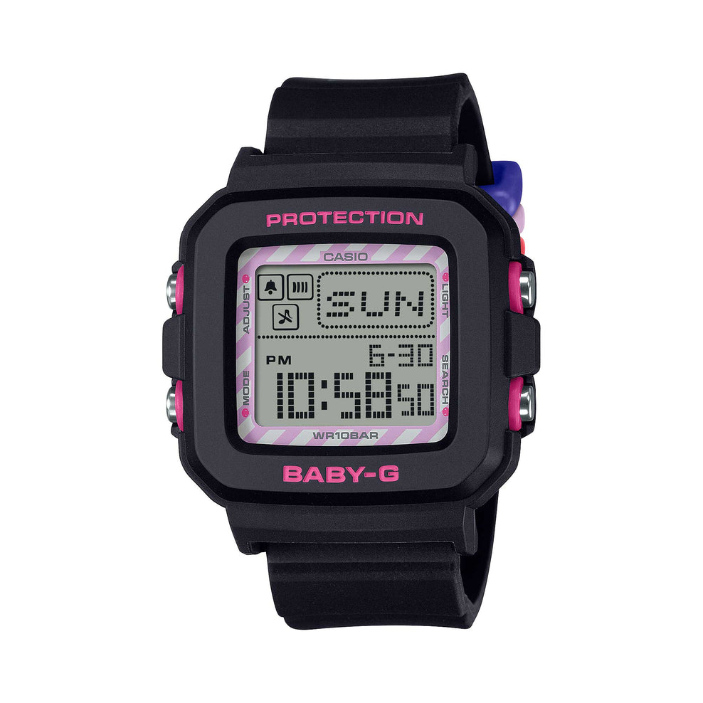 The base model is the BABY-G+PLUS series BGD-10K, a versatile digital wristwatch with a square bezel and a strap-attached holder that doubles as a unique charm.