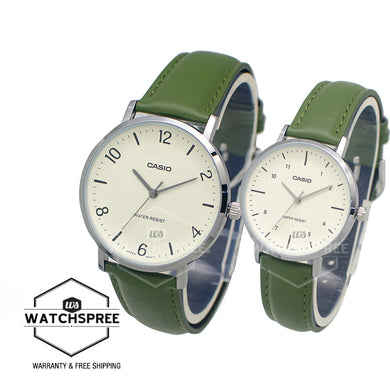 Casio Couple Green Leather Strap Watch LTP-VT03L-3B MTP-VT03L-7B [Couple Watch Set]