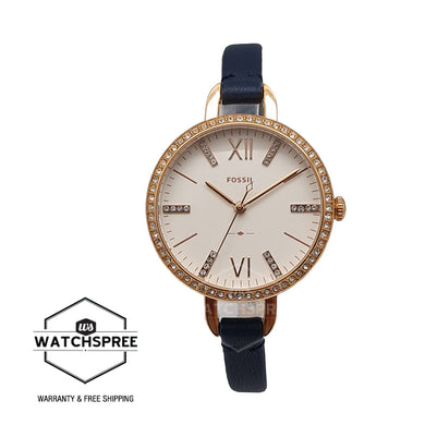 Fossil Ladies' Annette Three-Hand Navy Leather Strap Watch ES4403