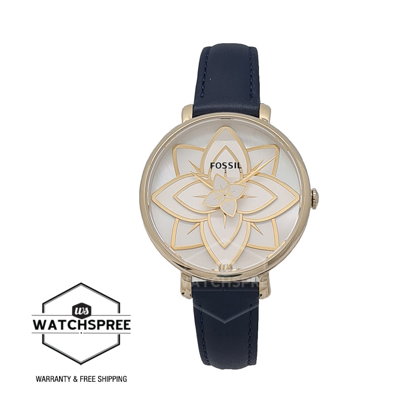 Fossil Ladies' Jacqueline Three-Hand Navy Leather Strap Watch ES4938 Watchspree