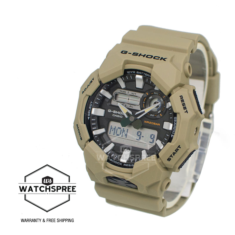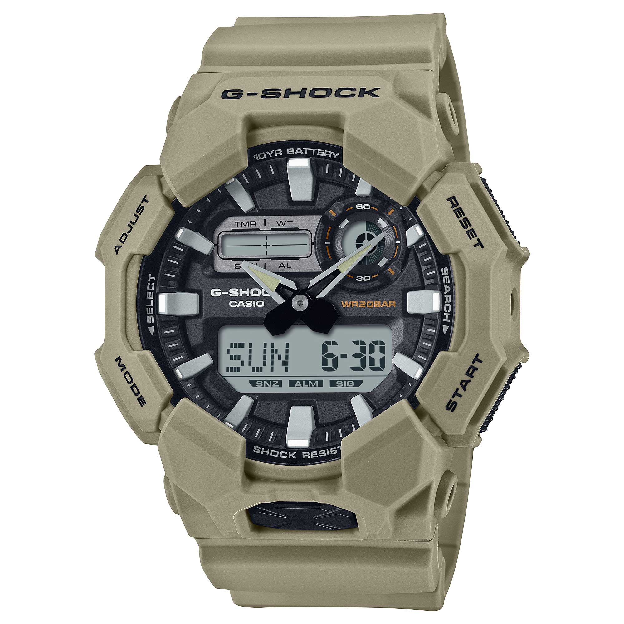 The analog-digital GA-010 delivers handy features like world time and stopwatch, as well as a high-brightness LED light, which can be easily accessed from the large button on front of the case, ensuring visibility even in the dark.