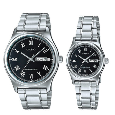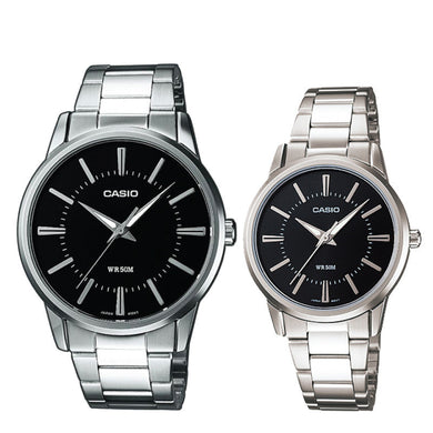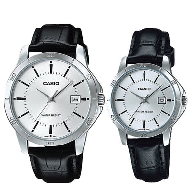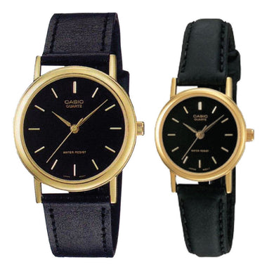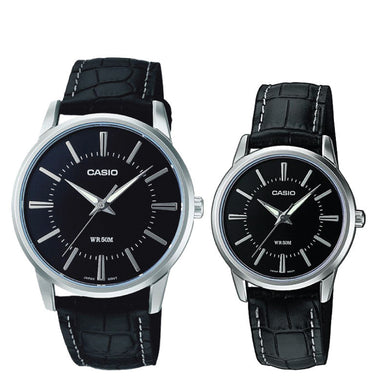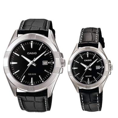 Casio Couple Black Leather Strap Watch LTPV002L-1B3 MTPV002L-1B3 [Couple Watch Set] Watchspree