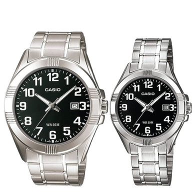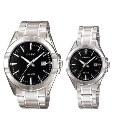 Casio Couple Stainless Steel Watch LTPV002D-1B MTPV002D-1B Watchspree