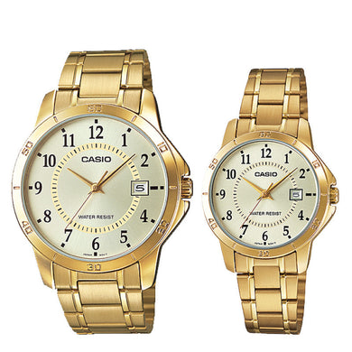 Casio Couple Gold Ion Plated Stainless Steel Watch LTPVT01G-7B MTPVT01G-7B [Couple Watch Set] Watchspree