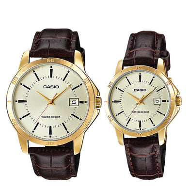 Casio Couple Leather Watch LTPV002GL-1B MTPV002GL-1B Watchspree