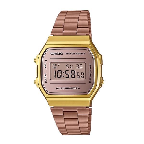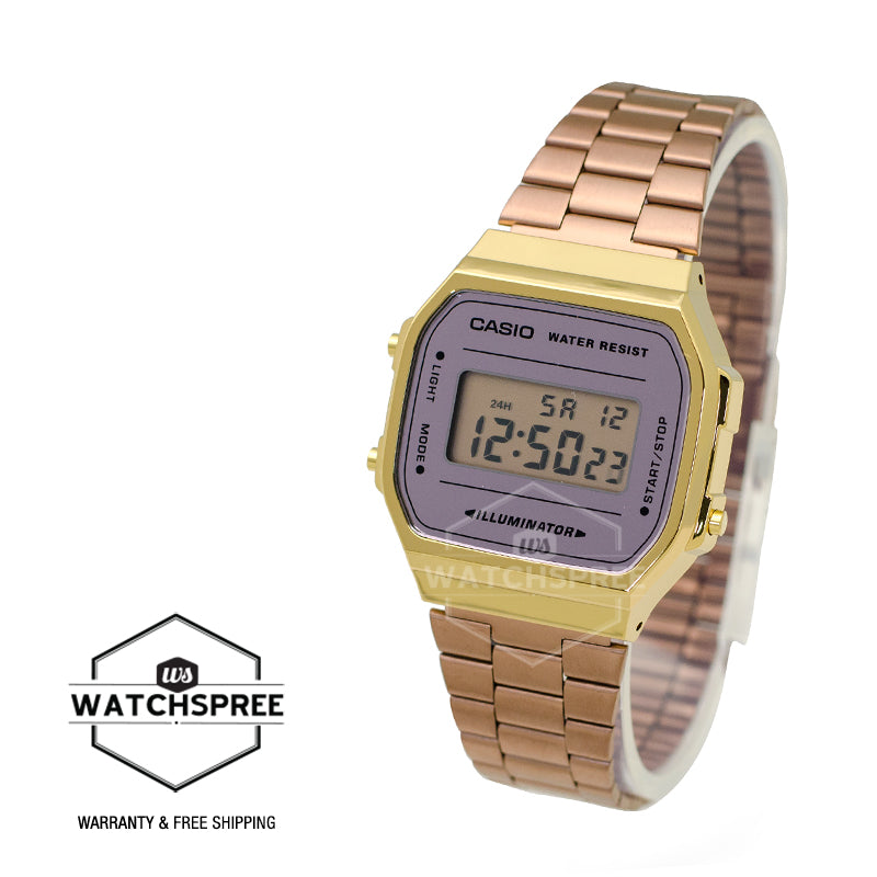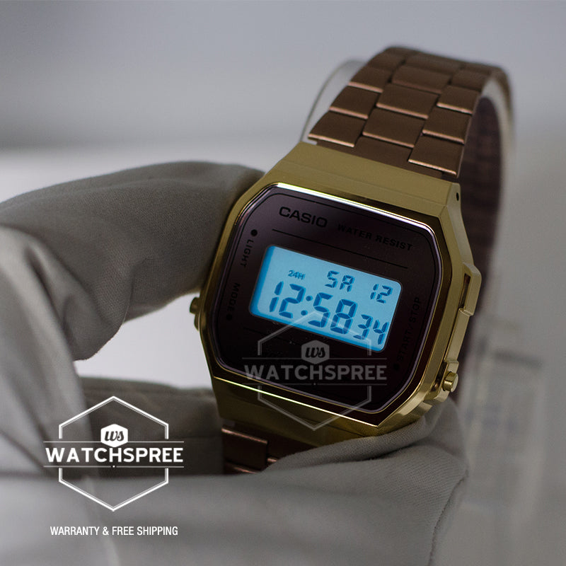 Casio Vintage Style Digital Rose Gold Ion Plated Band Watch A168WECM-5D A168WECM-5
