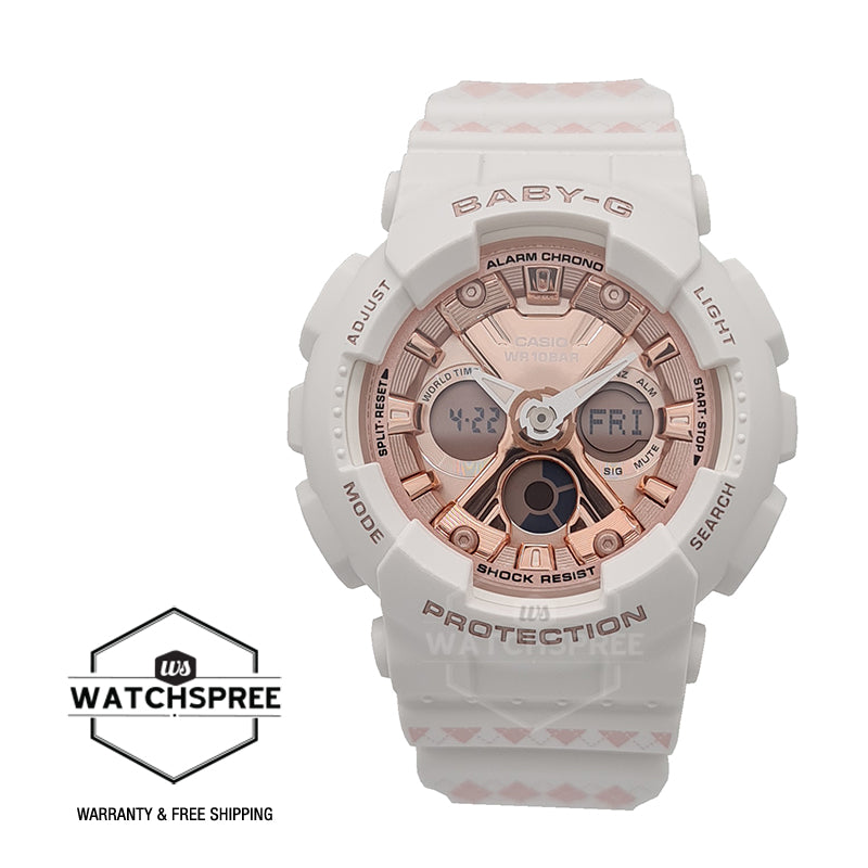Casio Baby-G BA-130 Lineup White and Pale Pink Argyle Resin Band Watch BA130SP-7A BA-130SP-7A Watchspree