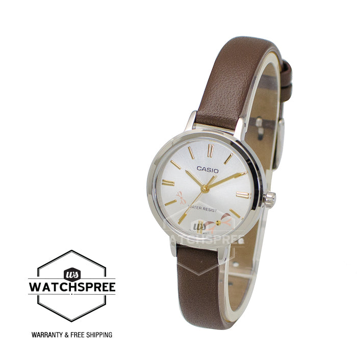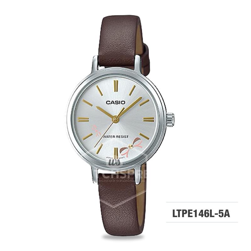 Casio Ladies' Fashion Standard Analog Dark Brown Leather Strap Watch LTPE146L-5A LTP-E146L-5A Watchspree