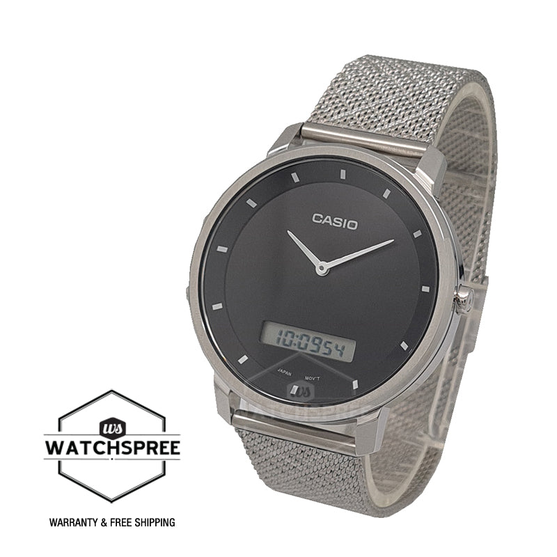 Casio Men's Analog-Digital Stainless Steel Mesh Band Watch MTPB200M-1E MTP-B200M-1E Watchspree