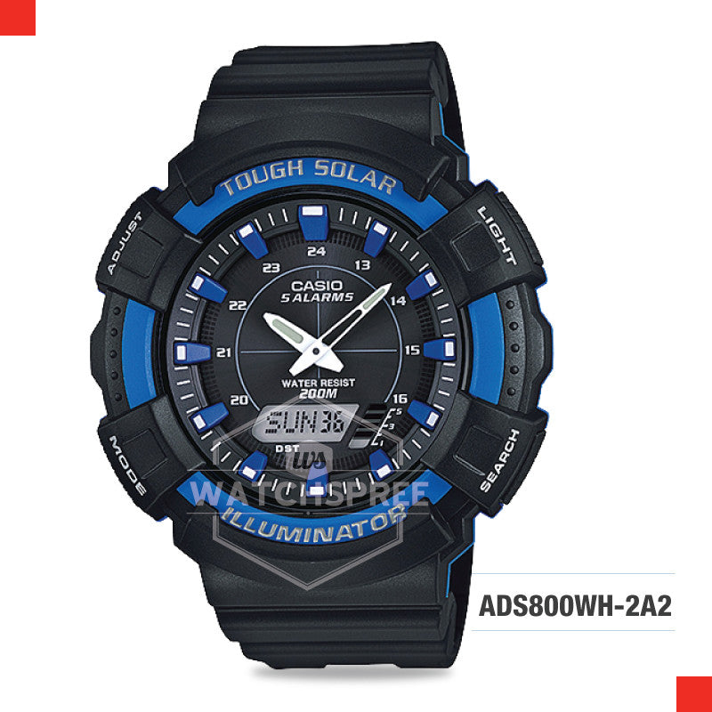 Introducing the ADS800WH-2A2, a new sleek case style with technical capabilities to match. This ana-digi timepiece comes is powered using our Tough Solar technology and also boasts 200 meter water resistance and World Time. Complete with an LED light, this watch is perfect for everyday use.