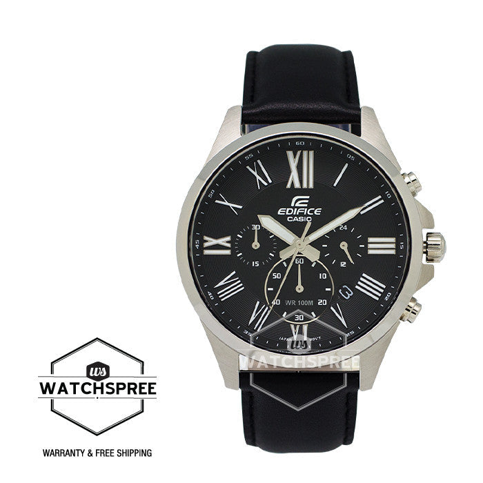 Casio Edifice Chronograph Black Leather Strap Watch EFV500L-1A