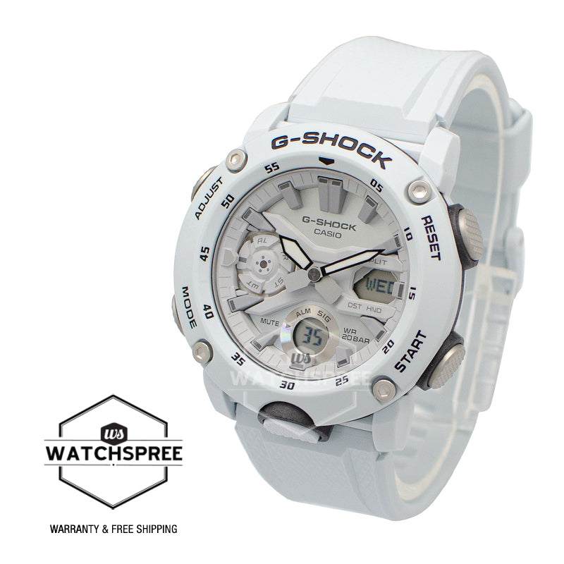 Casio G-Shock Carbon Core Guard Structure White Resin Band Watch GA2000S-7A GA-2000S-7A Watchspree