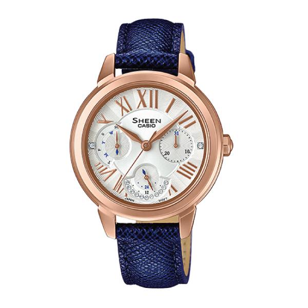Casio Sheen Multi-Hand with Swarovski¶ôÇïÇ?ǯ Crystals Blue Leather Strap Watch SHE3059PGL-7B SHE-3059PGL-7B